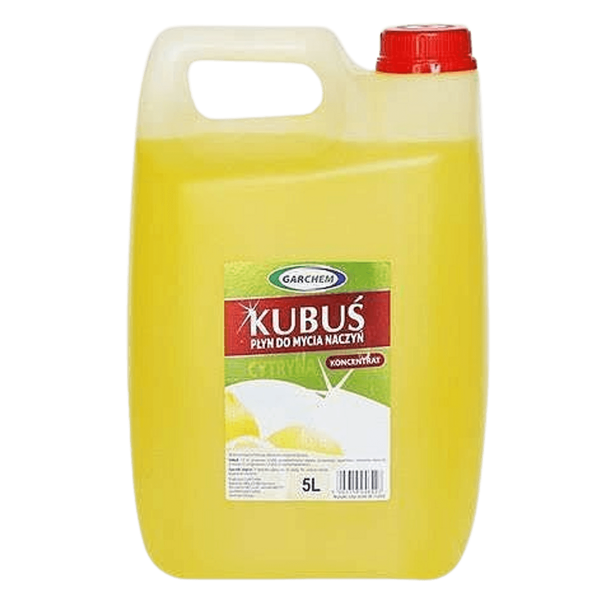 KUBUŚ Течен препарат за миене на съдове Лимон 5л. KUBUŚ Течен препарат за миене на съдове с аромат на лимон е изключително ефективен продукт, предназначен за лесно и бързо премахване на мазнини, замърсявания и хранителни остатъци. Специално създадената му формула осигурява силно почистващо действие, като същевременно е нежна към съдовете и ръцете.