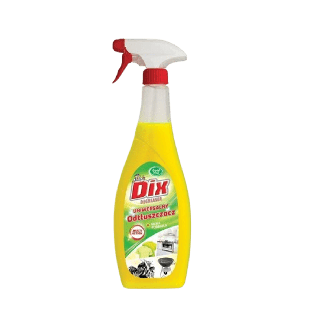 Dix отстраняващ мазнини е ефективно средство за почистване на силно замърсени, мазни повърхности в кухнята и в целия дом. Подходящ е за почистване на кухненски аспиратори, барбекюта, кухненски плотове, градински мебели, косачки, двигатели на превозни средства, велосипедни вериги, спирачни дискове на велосипеди, тапицерия, стъкла, плочки за баня и премахване на петна от дрехи.