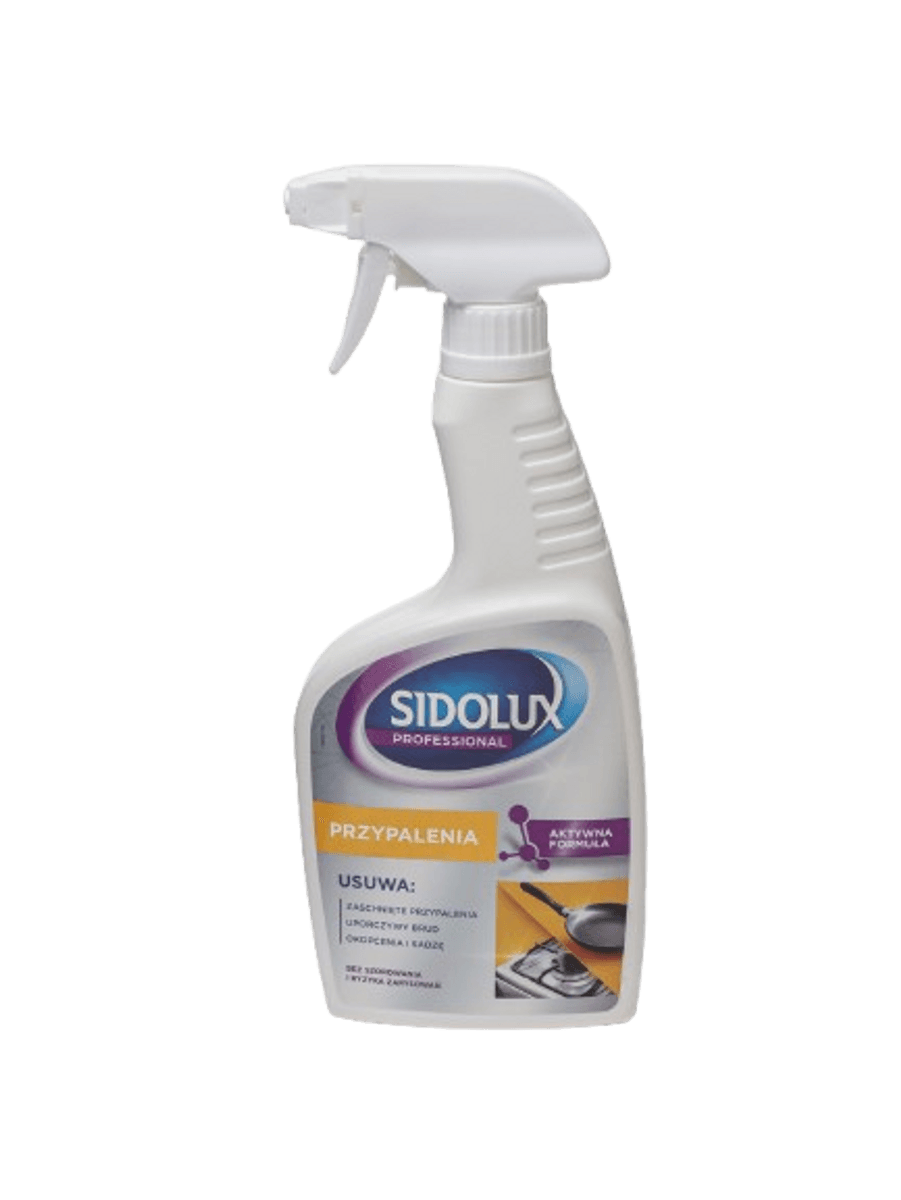 Sidolux Professional Przypalenia е мощен почистващ спрей, създаден за ефективно премахване на загорели мазнини, остатъци от храна и упорити замърсявания. Подходящ за употреба върху фурни, котлони, грилове, тави и съдове. Благодарение на активната си формула, препаратът действа бързо и без нужда от агресивно търкане. Идеален за професионална и домашна употреба. Опаковка: 500 мл.