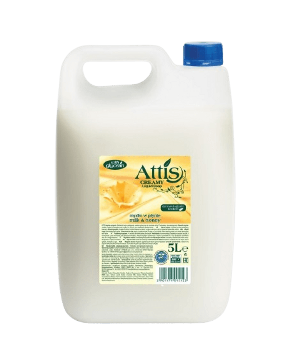 Начало / Продукти / Хигиенни продукти / Течен сапун / Течен сапун ATTIS Мляко & Мед 5л.