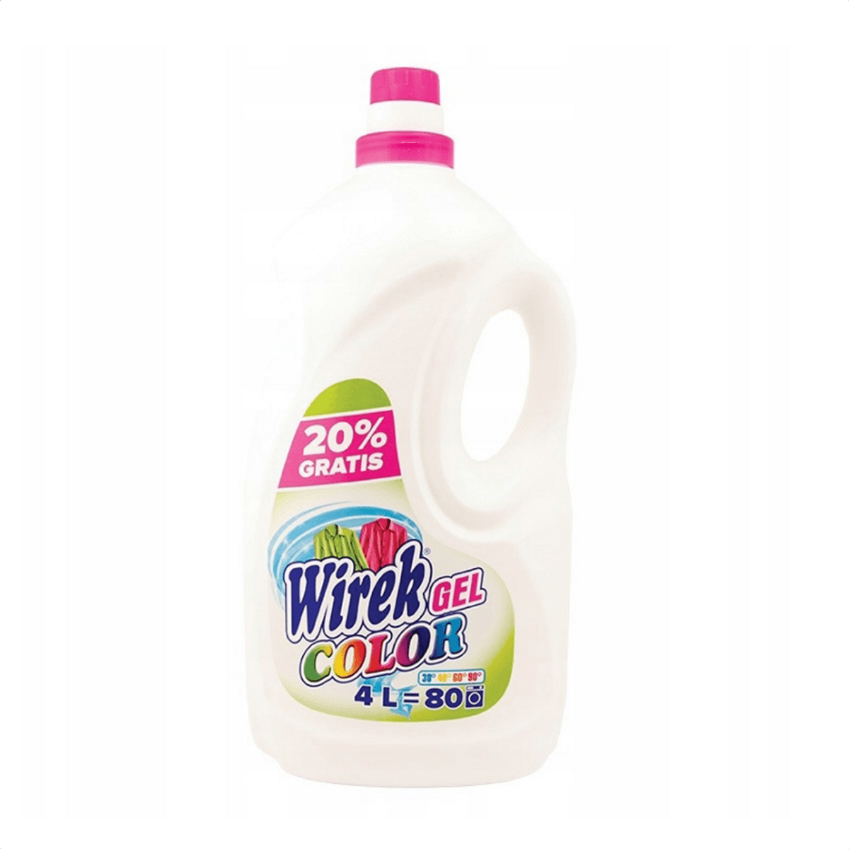 Това е концентриран препарат за пране на цветни тъкани, с който ще забравите за упоритите петна за миг. Не само че придава ослепителна чистота, но също така осигурява отлична грижа за тъканите.Гелът на марката Wirek е предназначен за пране на цветни тъкани във всички видове перални машини, както и за ръчно пране.