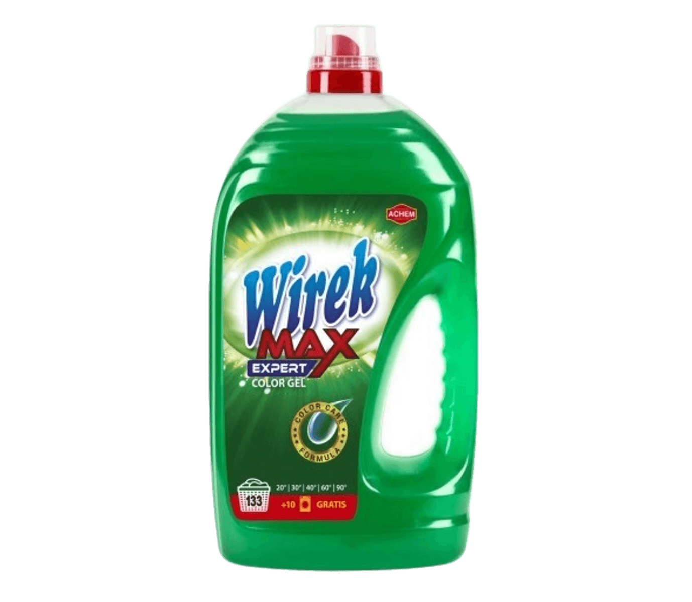 Wirek Max Expert е висококачествен гел за пране, специално създаден за цветни тъкани. Подходящ е за използване във всички видове перални машини, както и за ръчно пране, което го прави универсално решение за вашите нужди.